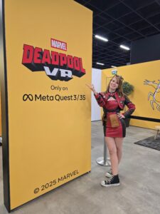 The game also surprised me by being a legit workout. The demo’s combat encounters are nonstop movement – dodging, slicing, reaching, spinning, blocking- and the pace stays high the entire time. I walked out of the booth extremely sweaty! If you like VR fitness, Deadpool VR unintentionally has you covered.